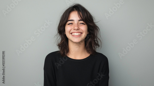 woman, beauty, face, smiling, smile, person, people, brunette, hair, teenage, model, fashion, studio, 1, eye, looking, lady, expression