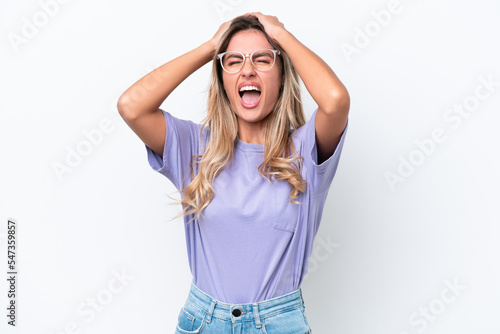 Young Uruguayan woman isolated on white background stressed overwhelmed