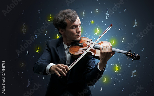 Young violinist with falling musical notes wallpaper and classical concept