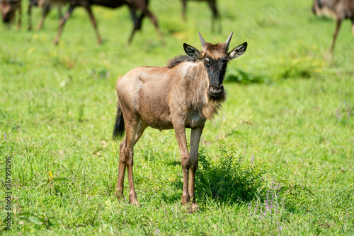 africa, african, gnu, kenya, animal, animal, baby, gnu, herbivore, safari, standing, stand, gnu, wildlife, young