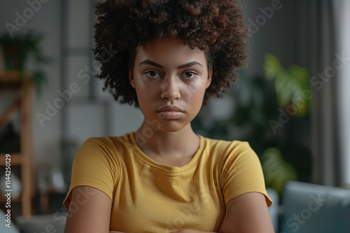 woman, serious, portrait, angry, black, young, cross, sad, face, african, look, white, american, girl
