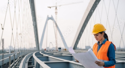 woman, engineer, construction, architect, builder, men at work, safety, bridge, civil, engineering, hard hat, blueprint, project, architecture, professional, female, site, work, industrial, industry, urban, infrastructure, structure, build, modern, development, future, contractor, inspecting, asian, caucasian, young, adult, person, human, smart, intelligent, skilled, trained, responsible, accurateness, occupation, career, employment, job, growth, progress, vision