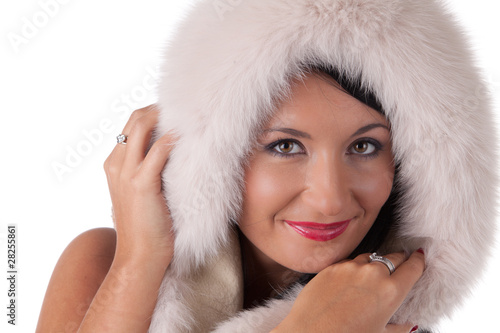 fashion, fur, winter, woman, beauty, hat, hood, young, adult, attractive, background, beautiful, brunette, caucasian, close, clothes, clothing, cold, elegance, face, female, girl, glamour, gorgeous, happy, headdress, lady, luxury, make-up, model, 1, person, portrait, pretty, season, seasonal, sensuality, smiling, warm, white