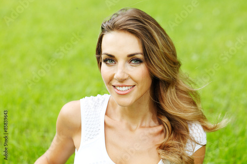 woman, beautiful, green, young, grass, female, girl, nature, summer, adult, portrait, park, caucasian, beauty, happiness, happy, smiling, lifestyle, relax, fresh, relaxation, smile, outdoors, pretty, meadow, slim, blond, cute, 1, white, dress, sitting