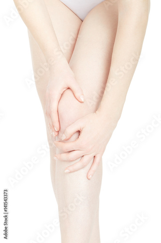 leg, pain, woman, leg, knee, hand, isolated, white, white background, joint, injury, caucasian, girl, adult, young, skin, fatigue, honed, cramp, body, care, female, holding, clipping path, tiredness, massage, ache, health, painfully, bruised, treatment, beauty, health care, disease, people, therapy, medicals, touching, muscle