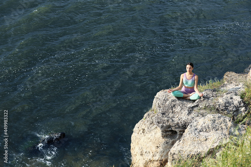 beautiful, background, nature, woman, outdoors, adult, female, person, young, landscape, caucasian, sitting, lotus, zen, harmony, meditating, asana, meditation, environment, space, copy, text, stone, cliff, hill, river, riverside, calm, atmosphere, mood, tranquil, peaceful, girl, healthy, relax, lifestyle, body, yoga, exercise, feeling, soul, spiritual, posture, water, sea, lake, wellness, mental, concentration