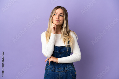 Young woman over isolated purple background having doubts and thinking