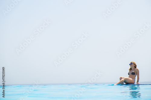 attractive, beautiful, beauty, bikini, blue, body, caucasian, day, enjoying, face, fashion, female, girl, hair, model, pool, portrait, posing, resort, sexy, side, summer, sunny, swimming, vacation, water, white, woman, young