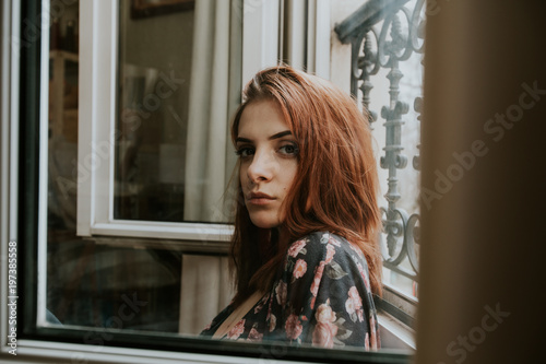 Young woman posing at window