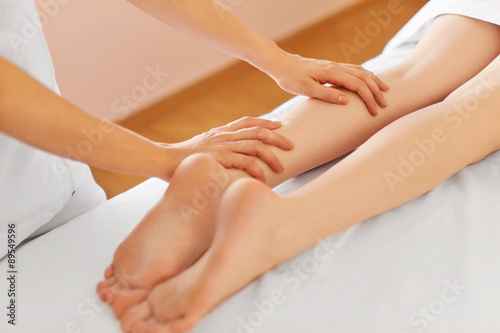Young Woman Receiving Leg Massage at Spa Center. Body Care