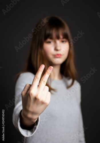 woman, peace, signs, finger, young, dark, background, gesture, calm, positivity, expression, hand, showing, confidence, portrait, casual attire, style, beauty, model, hair, brown, emotion, friendly, relaxed, youth, female, person, close, up, modern, artistic, creative, studio, fashion, trendy, lifestyle, communication, symbol, happiness, serene, peaceful, vibe, attitude