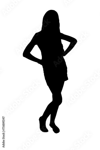 young woman silhouette and body expression black and white vector image fashion beauty on white background transparent mocup