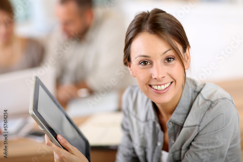 business, student, training, girl, tablet, missy, office, portrait, university, school, college, internship, pad, pda, cyberspace, technology, commerce, group, team, background, colleague, workteam, indoor, workplace, corporate, education, successful, happy, smile, smiling, pretty, beautiful, european, smart, confident, cheerful, young people, trendy, meeting, businesswoman