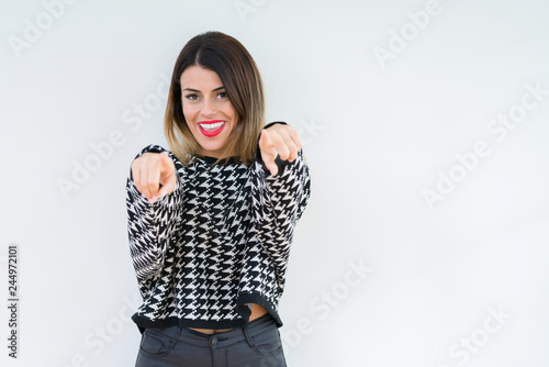 Young woman wearing casual sweater over isolated background Pointing to you and the camera with fingers, smiling positive and cheerful