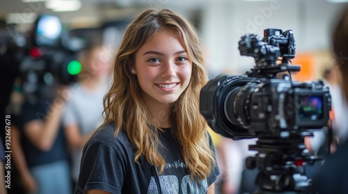 missy, female, camera, camcorder, filmmaker, movie set, film industry, creative, technology, media, entertainment, sharpened, shooting, capture, lens, light, composition, happy, confident, aspiring, professional, work, job, career, business, tech, equipment, production, director, crew, shoot, film, motion picture, television, television