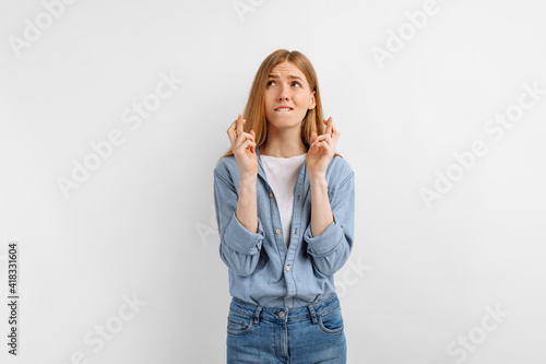 wish, woman, person, young, desire, hope, believe, cross, student, luck, people, background, studio, white, isolated, man, clothes, happy, job, joy, confident, deal, exam, cheerful, positive, stress, face, portrait, concept, life, problem, signs, female, pray, expression, emotion, praying, wishing, crossed, glad, waiting, finger, smile, cute, beauty, gesticulate, pleased, model, lucky