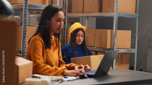 hand-held, wheelchair, disability, impairment, chronic, physical, warehouse, inventory, shelf, storage, small business, startup, entrepreneur, shipment, order, merchandise, storehouse, laptop, computer, paper, logistic, stock, supply, chain, management, quality control, production, distribution, delivery, rack, box, cardboard, package, retail, pack, business plan, shipping, men at work, team, group, teamwork, woman, man, asian, work