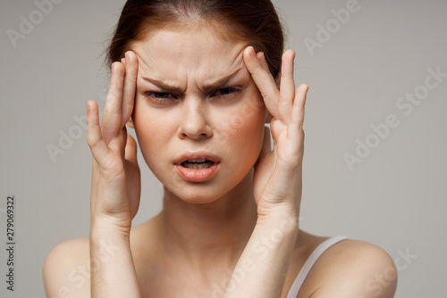 cephalalgia, woman, pain, head, stress, portrait, migraine, young, girl, female, health, sleepy, stressed, face, ache, problem, beautiful, sick, background, hand, depression, white, person, caucasian, expression, resolution, pressure, holding, brunette, frustrated, teenage, health care, disease, lady, adult, suffer, ill, isolated, sad, painful, unhappy, bruised, high, concept, people, exhausted, pretty, 1, symptom, medicals