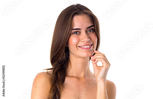 adult, female, elegance, studio, fashion, hair, long, young, beautiful, posing, attractive, standing, person, people, 1, looking, woman, indoor, enjoyment, lifestyle, fashionable, emotion, caucasian, colours, human, beauty, femininity, white, background, plait, smiling, smile, happiness, happy
