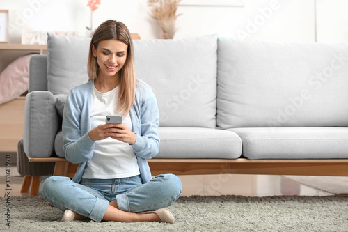 Young woman with mobile phone at home
