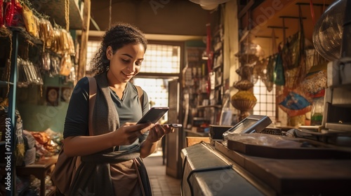 Young_woman_seller_using_device_to_make_payment small business ai generative image