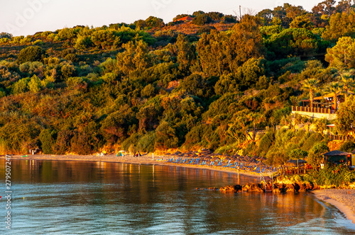 Zakynthos Island, Greece. A pearl of the Mediterranean with beaches and coasts suitable for unforgettable sea holidays. Agios Nikolaos Beach at sunrise.