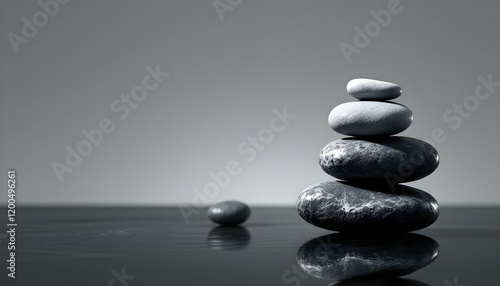 zen, stone, asymmetrical, stack, modern, matte, glossy, texture, polished, black, surface, reflections, subtile, gradient, grey, background, resolution, balance, harmony, calm, minimalist, serene, tranquil, meditative, peaceful, nature, simplicity, alignment, symmetry, mindfulness, elegant, refined, aesthetic, artistic, smooth, sleek, sophisticated, contrast, luxurious, harmonious, contemporary, stillness