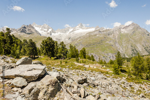 Zermatt, Dorf, Walliser Berge, Wallis, Alpen, Wanderweg, Naturweg, Findelbach, Findelschlucht, Lärchenwald, Schweizer Berge, Sommer, Schweiz