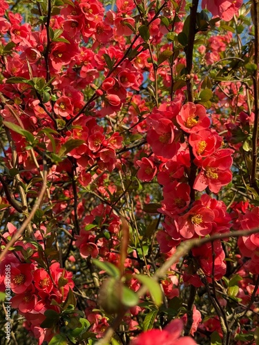 Zierquitte Chaenomeles Prunus Pfirsichbaum Rosales Rosaceae Rose Pyrinae Flowering quince Chaenomeles peach tree apple fruit pink red bush spring spines, foliage, Japan, China, Germany, ornamental