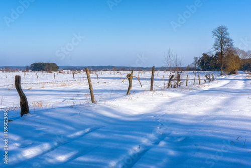 Zimowy, słoneczny i mroźny dzień w Dolinie Narwi, Podlasie, Polska