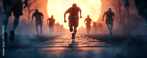 runner, movement, sprint, energetic, glow, horizon, determination, captivate, twilight, wellness, sunset, ghostly, challenge, night time, event, social, trend, athlete, action, physical exercise, fitness, picture, shadow, freedom, speed, festive, landscape, city, dusk, routine, road, passion, team, moonlit, youthful, silhouette, motion, motion picture, skittish, playful, scarey, race, train, view, journey, goal, balance
