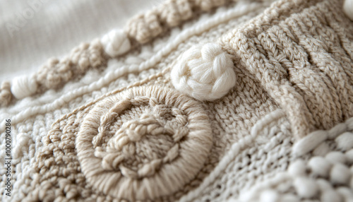 Zoomed-in textures of fabrics like knit wool, woven patterns, or intricate embroidery, creating a cozy, tactile feel